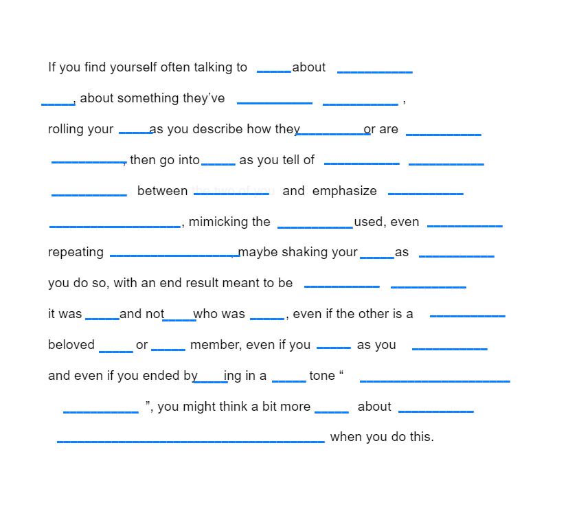 This is a (satirical) version of the poem, where the reader can fill in the blanks and make their own poem. Reminiscent of days gone by, with Mad-Libs, for those who might not have liked the more serious tone of the original poem.